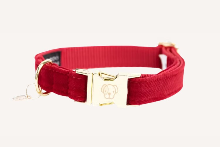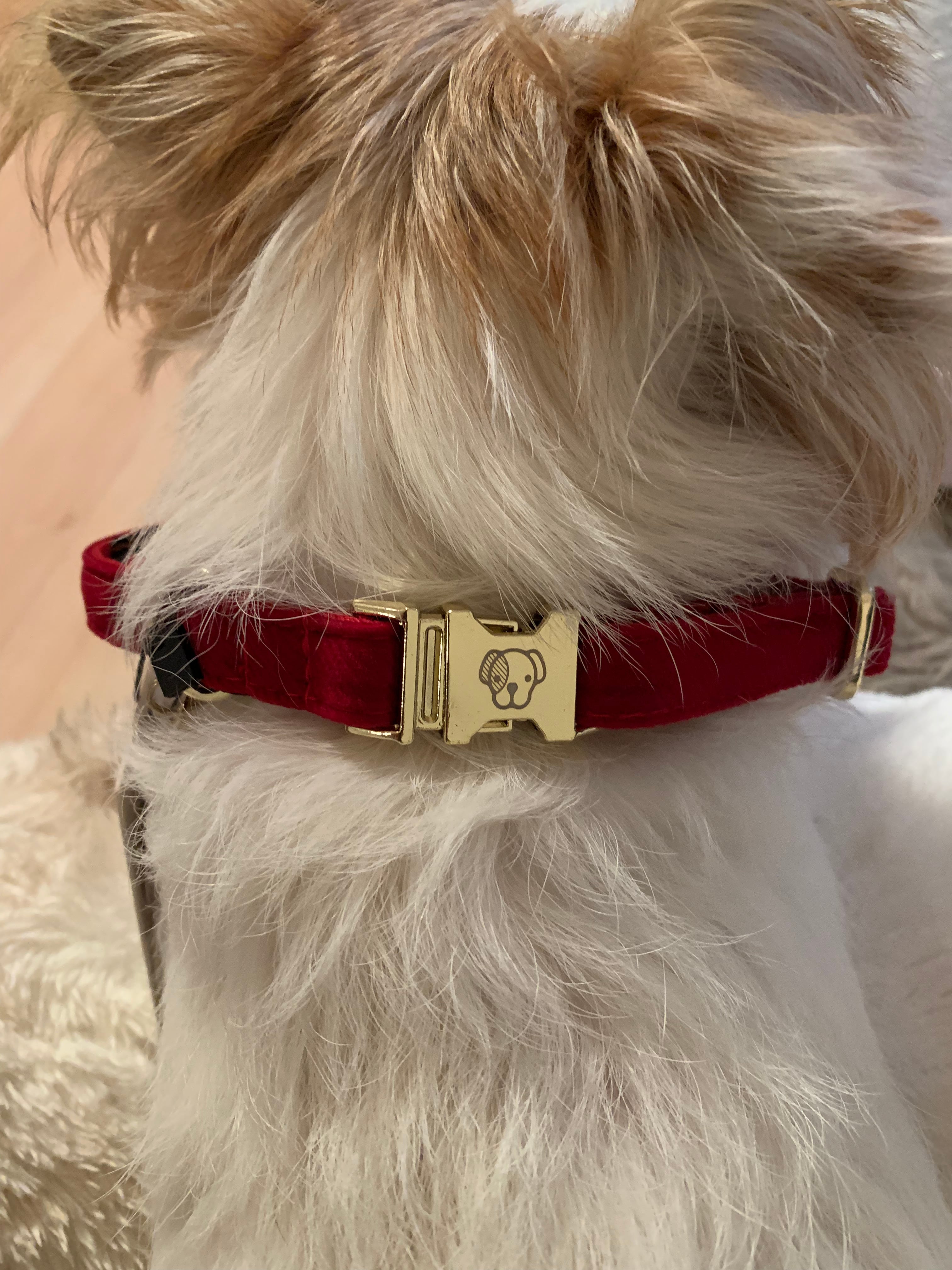 表地はマイクロファイバー素材を使用した、上品で繊細な「ベルベット」のような印象の犬用首輪です。